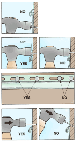 Nails go directly into the slot with no aiming and it keeps nails from going in tight.